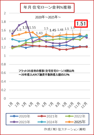 2025年11月のフラット35、全宅住宅ローンは先月より上昇に。12月を予想しても2025年は過去5年間で最も高い金利で終わりそうです。