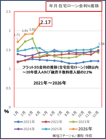 年初からじわじわと上昇してきた固定金利の住宅ローンフラット35が、一気に値上がりしました。