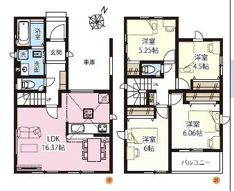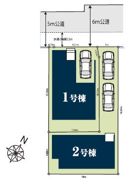駐車場、公共本下水、都市ガス 全2棟 諸条件は1号棟 2号棟5499万円(3階建)