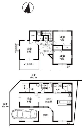 | 接道 | 北 8.3m(幅員) 公道 西 4m(幅員) 私道 |